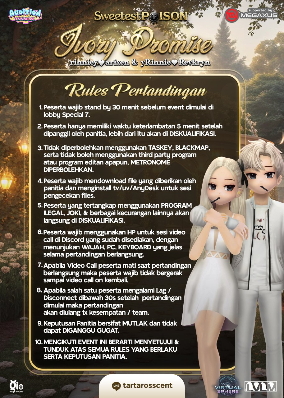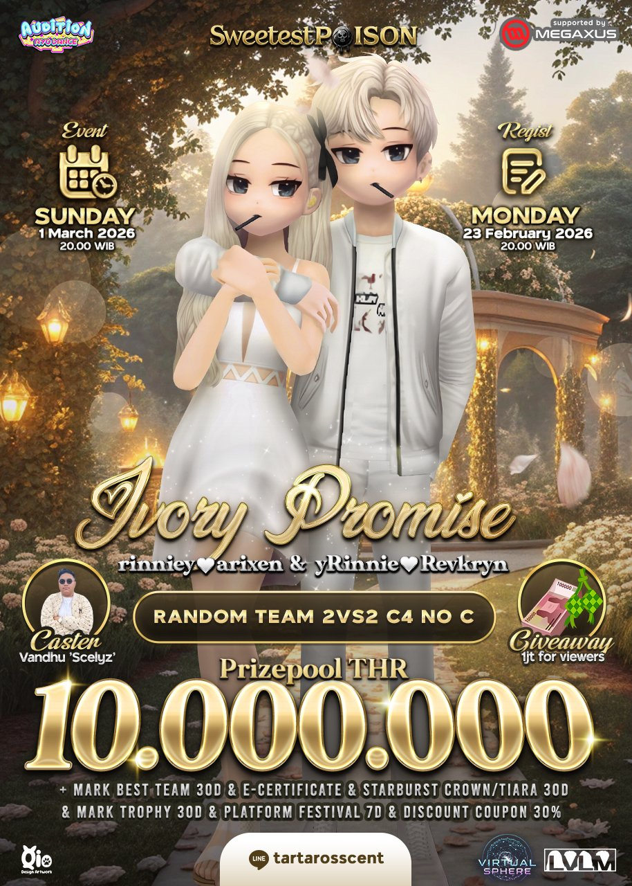 Link pendaftaran : https://tinyurl.com/IvoryPromiseRinnieArixenTechnical Meeting : Jumat, 27 Februari 2026 (LINE Group)